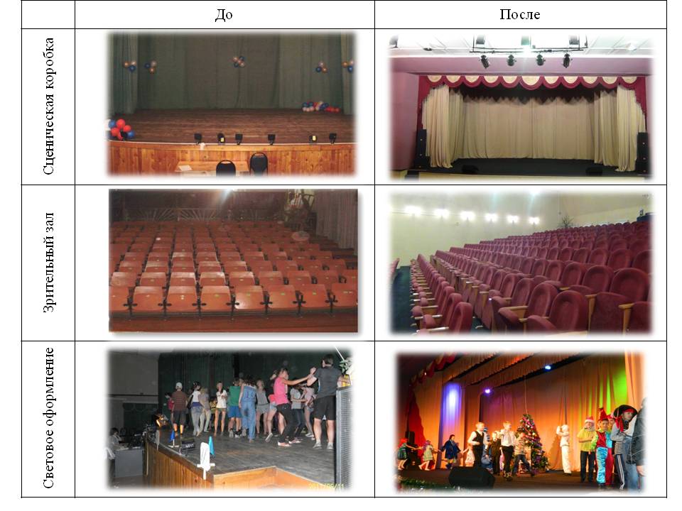 Участие Центра театрального творчества "ЛиК" в программе "100 модельных домов культуры Приангарью" позволило не только технически переоснастить Учреждение, но и использовать в спектаклях, новогодних программах, игровых программах такие спецэффекты как: дымовая машина, машина мыльных пузырей, снеговая машина, лезер, светодиодные деревья, мультимедийное оборудование и многое другое: