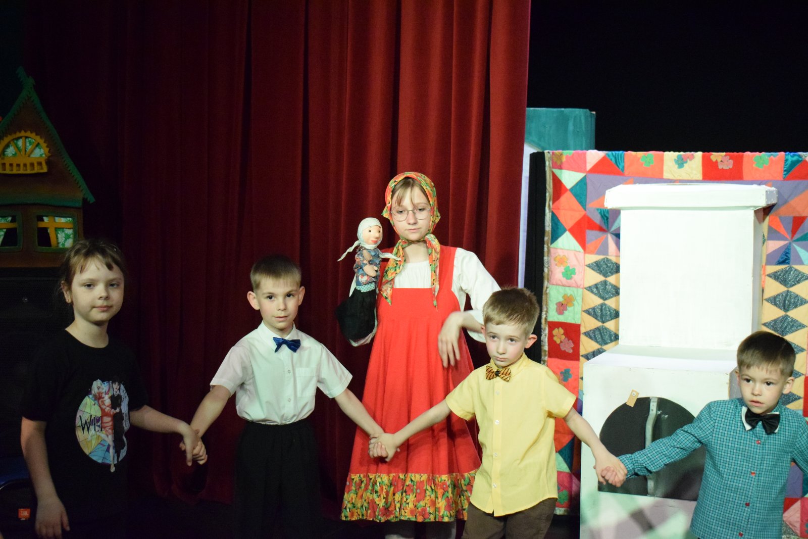 В программе наряду с актерами работают куклы, что вызывает неизменный интерес у детей. Множество игр, музыкальное сопровождение, загадки, песни и танцы - весь этот ворох затей заряжают хорошим настроением маленьких зрителей. Первыми погрузились в мир сказок воспитанники детских садов № 2 и № 4 рп. Чунский.
