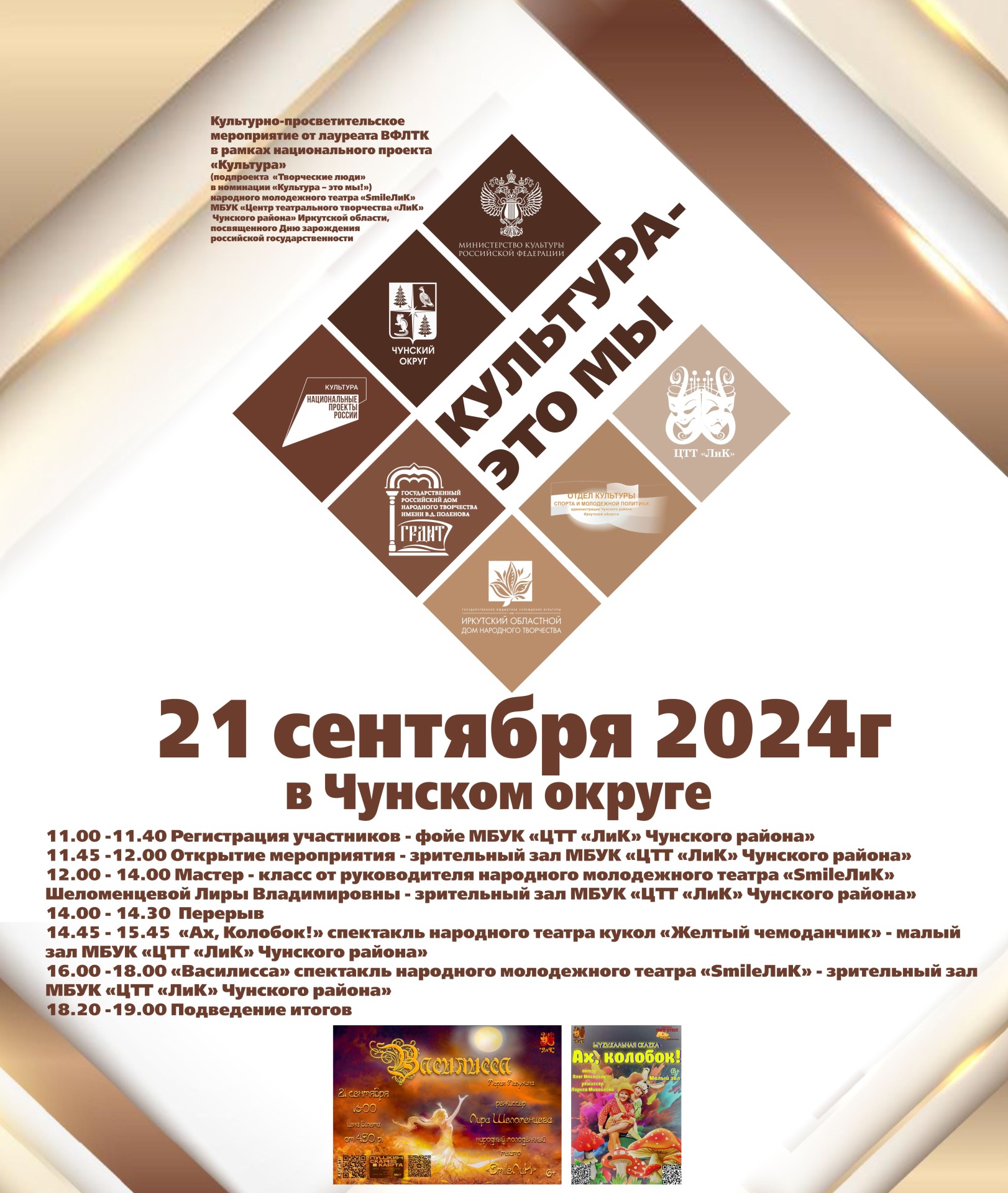 Приглашаем любительские театральные коллективы на мастер-класс от лауреата ВФЛТК в рамках национального проекта «Культура»(подпроекта «Творческие люди» в номинации «Культура – это мы!») народного молодежного театра «SmileЛиК», посвященного Дню зарождения российской государственности, который состоится на базе Центра театрального творчества "ЛиК" 21 сентября в 12.00 часов.